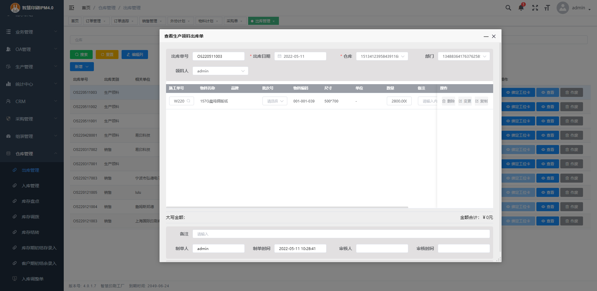 3.領(lǐng)料出庫(kù)單的數(shù)據(jù)都自動(dòng)從工單帶。