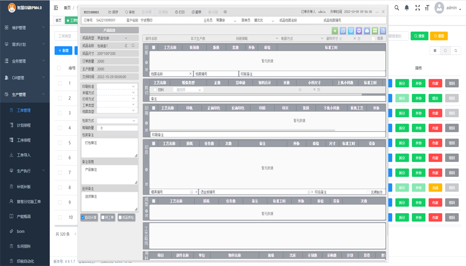 3.選擇不同成品類別可以出現(xiàn)不同界面,系統(tǒng)能支持印刷行業(yè)各種業(yè)務(wù)類型。